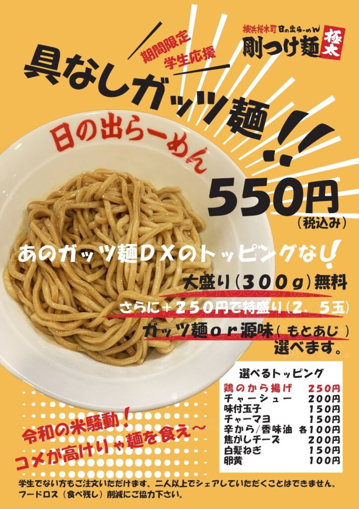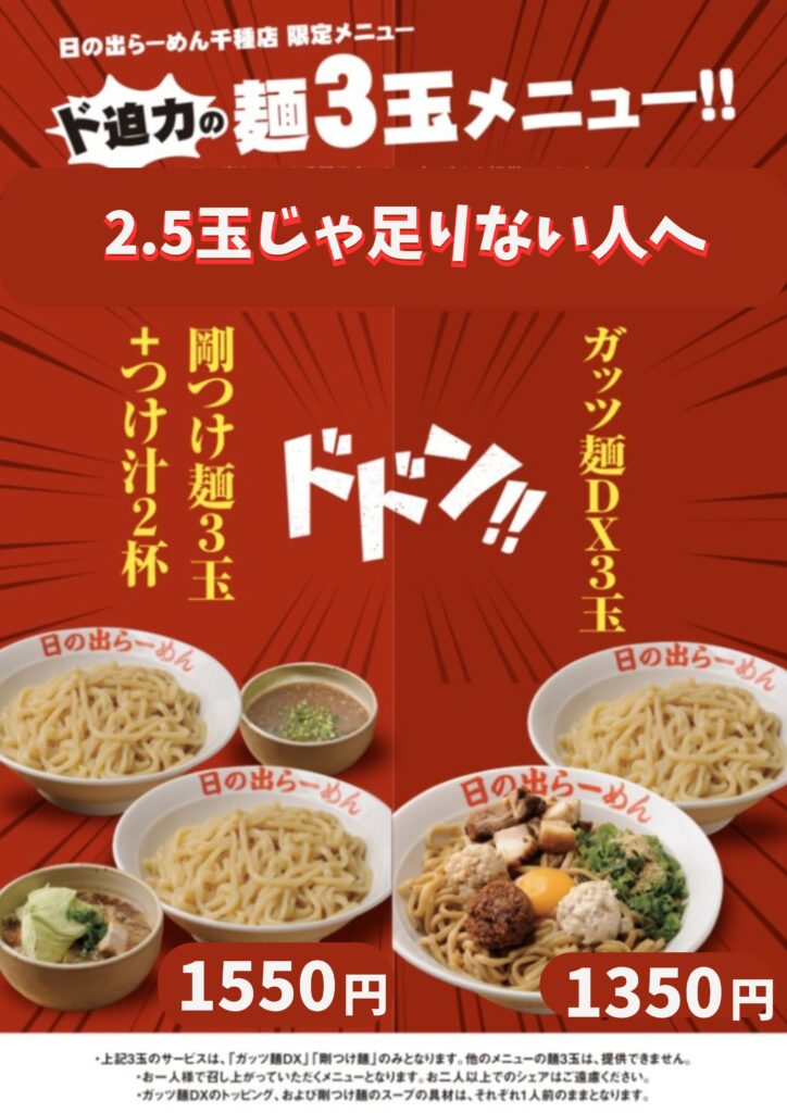 ☆毎日一食「剛つけ麺」または「ガッツ麺DX」が食べられる、日の出らーめん「定額制クーポン」の販売は終了しました。(2023年12月31日まで)